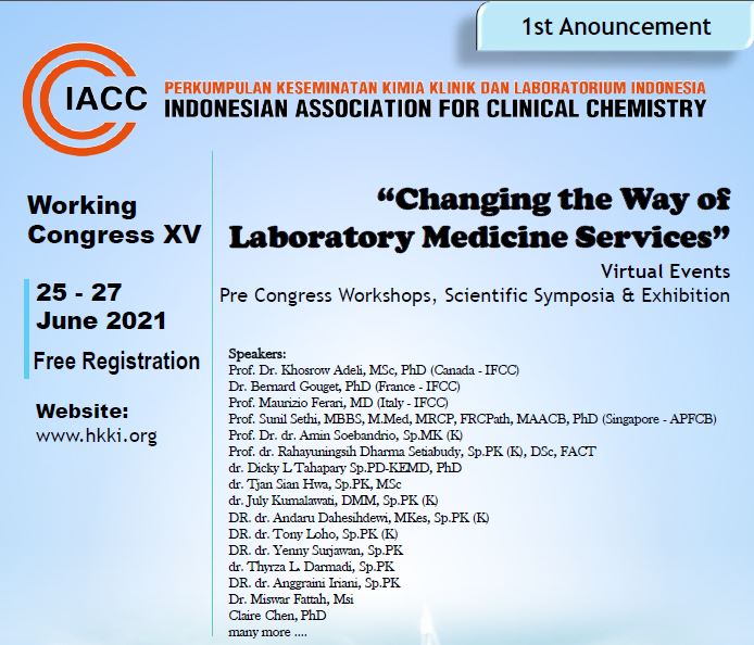 Working Conrgess XV25-27 June 2021Tema "Changing the Way of Laboratory Medicine Services"Download First Anouncement